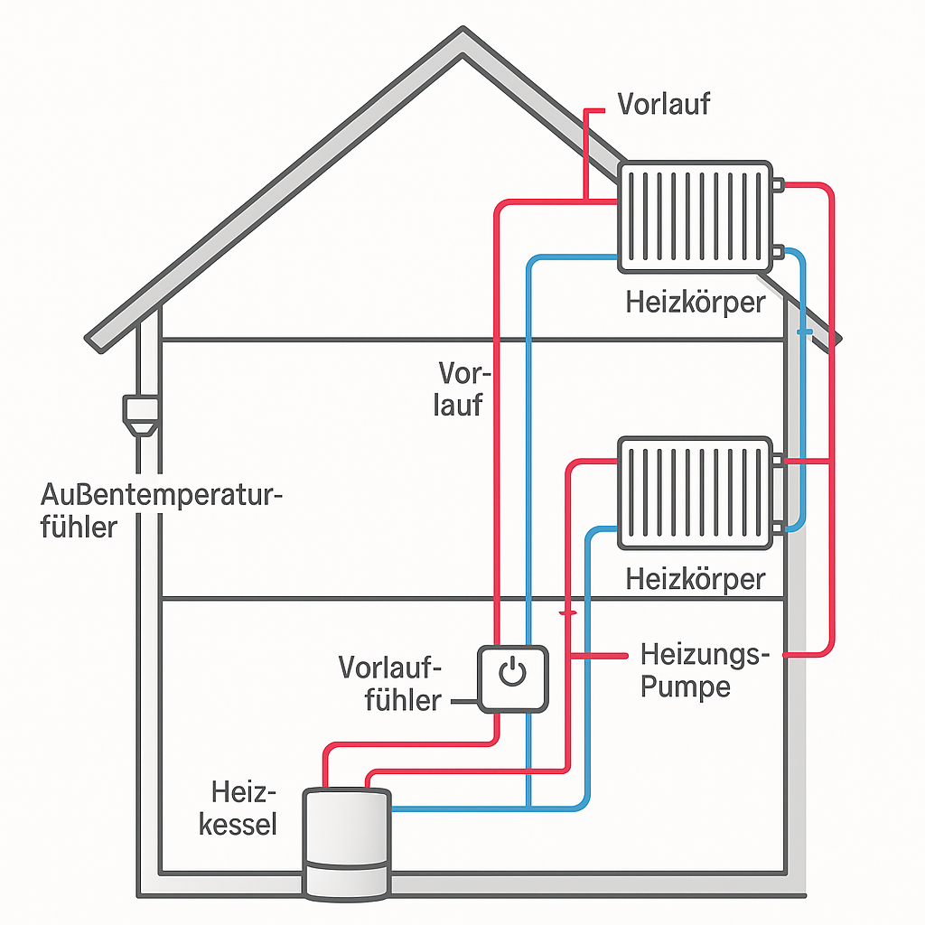 Einzelraumregelung, adaptives Aufheizen, Fenster-offen-Erkennung, optimierte Heizkurven, Abwesenheitslogik, minimierte Brennerstarts.